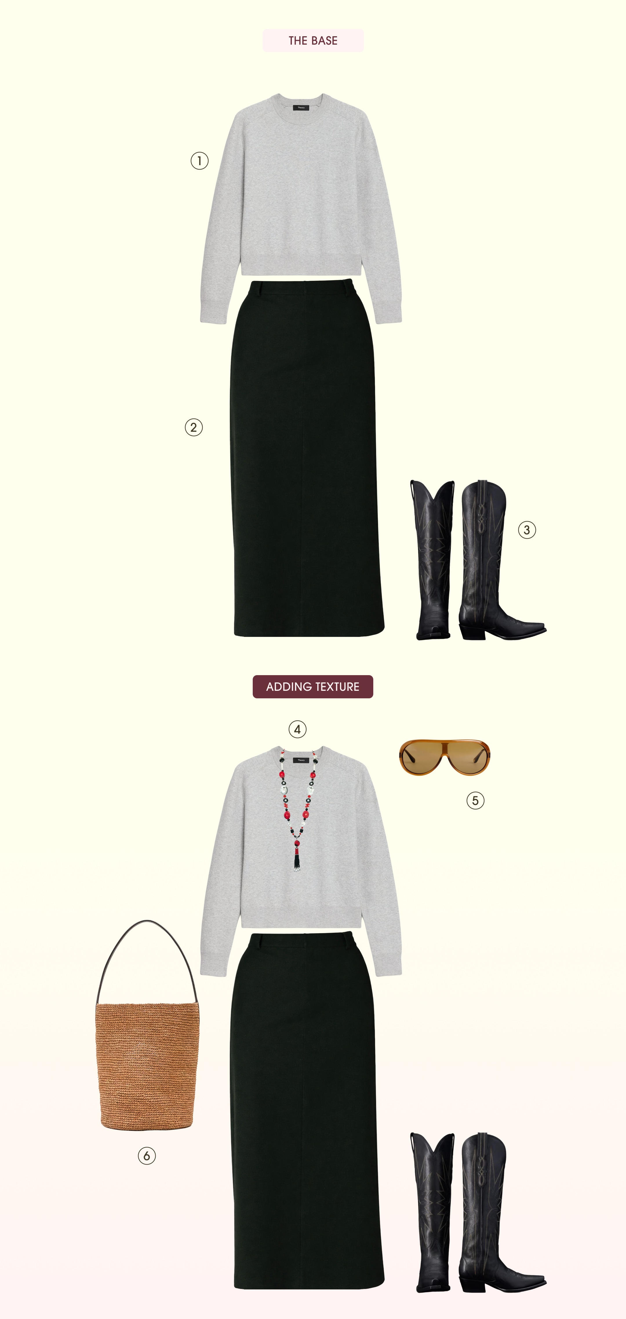You can still wear your favorite jeans and your favorite sweater, but it is just about the styling—about keeping what works and then using texture, color, and the “wrong” concept to introduce the incoming season (more on that below!).