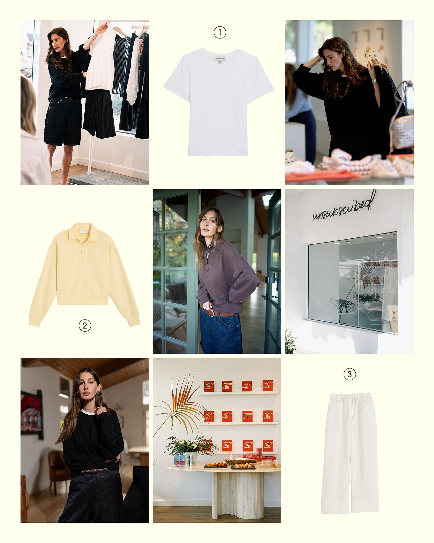A few weeks ago I did a very fun event at the Unsubscribed store in Santa Monica (P.S. if you are ever in the area, its a beautiful store and a fun destination to add to your LA shopping list!). I curated some of my favorite pieces from the collection and did a really fun styling session and Q&A where we went over some fun styling concepts. The store has multiple brands (including Agolde, Citizens and Dragon Diffusion.. some faves!) but the Unsubscribed collection was really impressive. I added some of my favorite pieces below including the polo sweatshirt that I have worn every single evening since I got it. I have been throwing it on with shorts but I also like the contrast of the sporty fleece with a lighter linen pant! You also know I am always on the hunt for a great fancy t-shirt and this one is VERY good. Soft and drapey but still has a nice shape and works great under a crewneck! The sleeve shape is also really good.