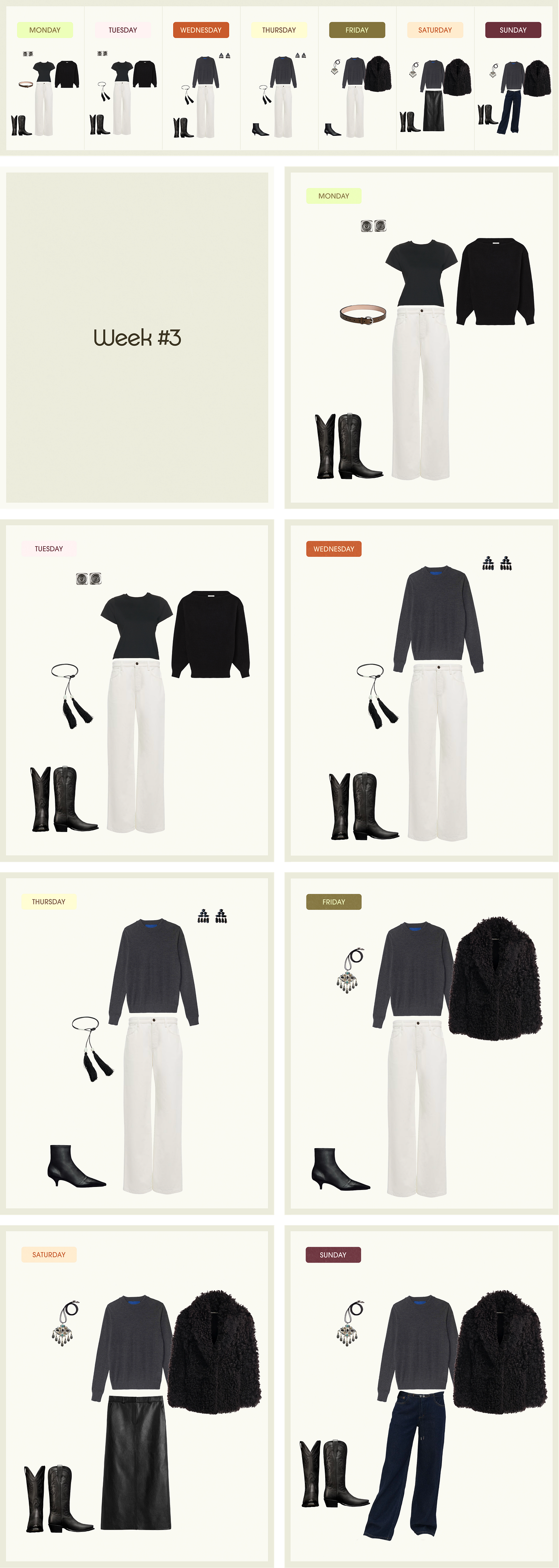 It seems really simple because it is, but by the end of the week I often end up with a totally different look. And then that can merge into the following week. And soon you have a new “wheel” that you can play with.